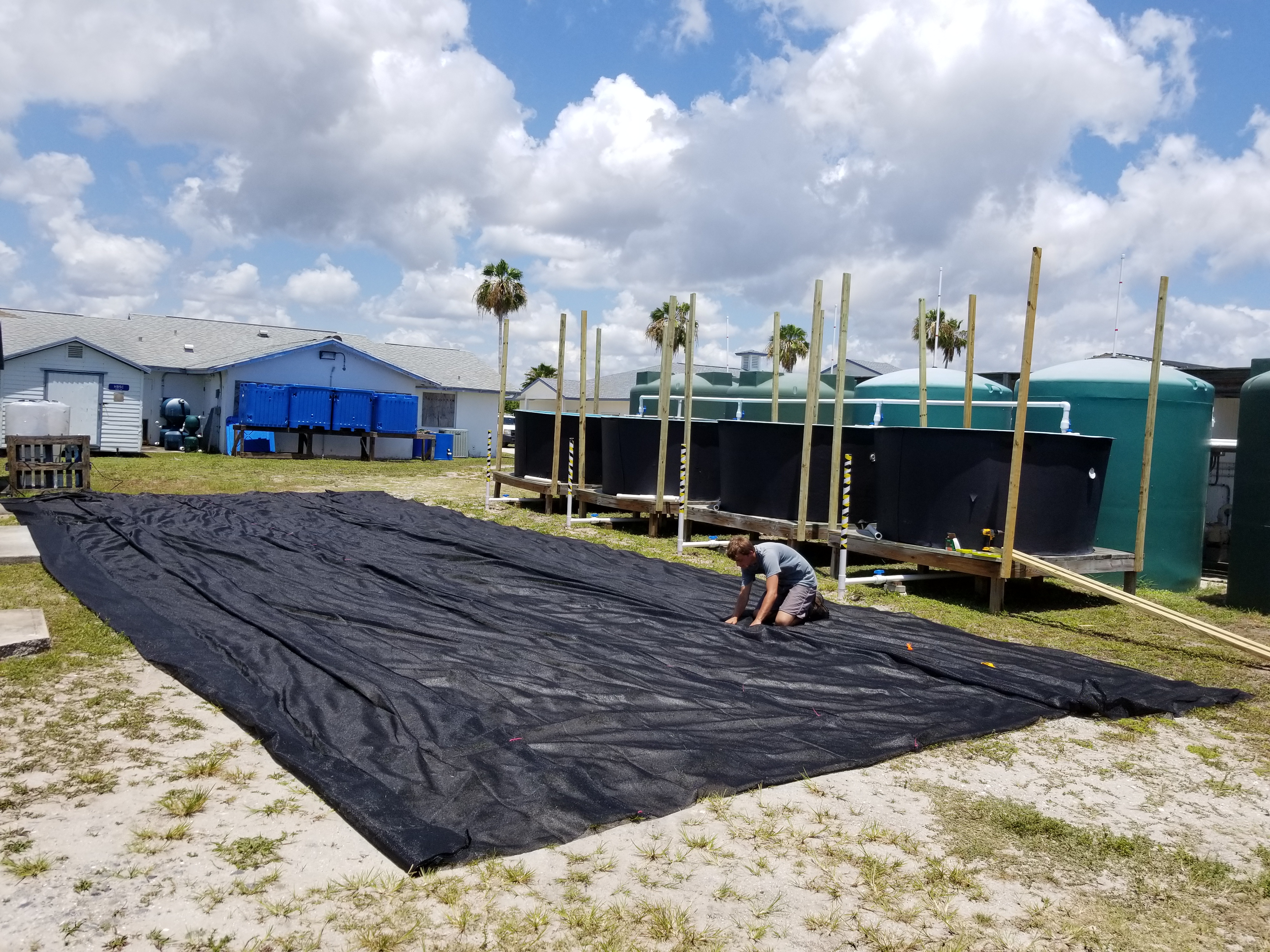 Four 4 cubic meter large-scale production research tanks were situated atop platforms with a centerdrain flowthrough saltwater system.