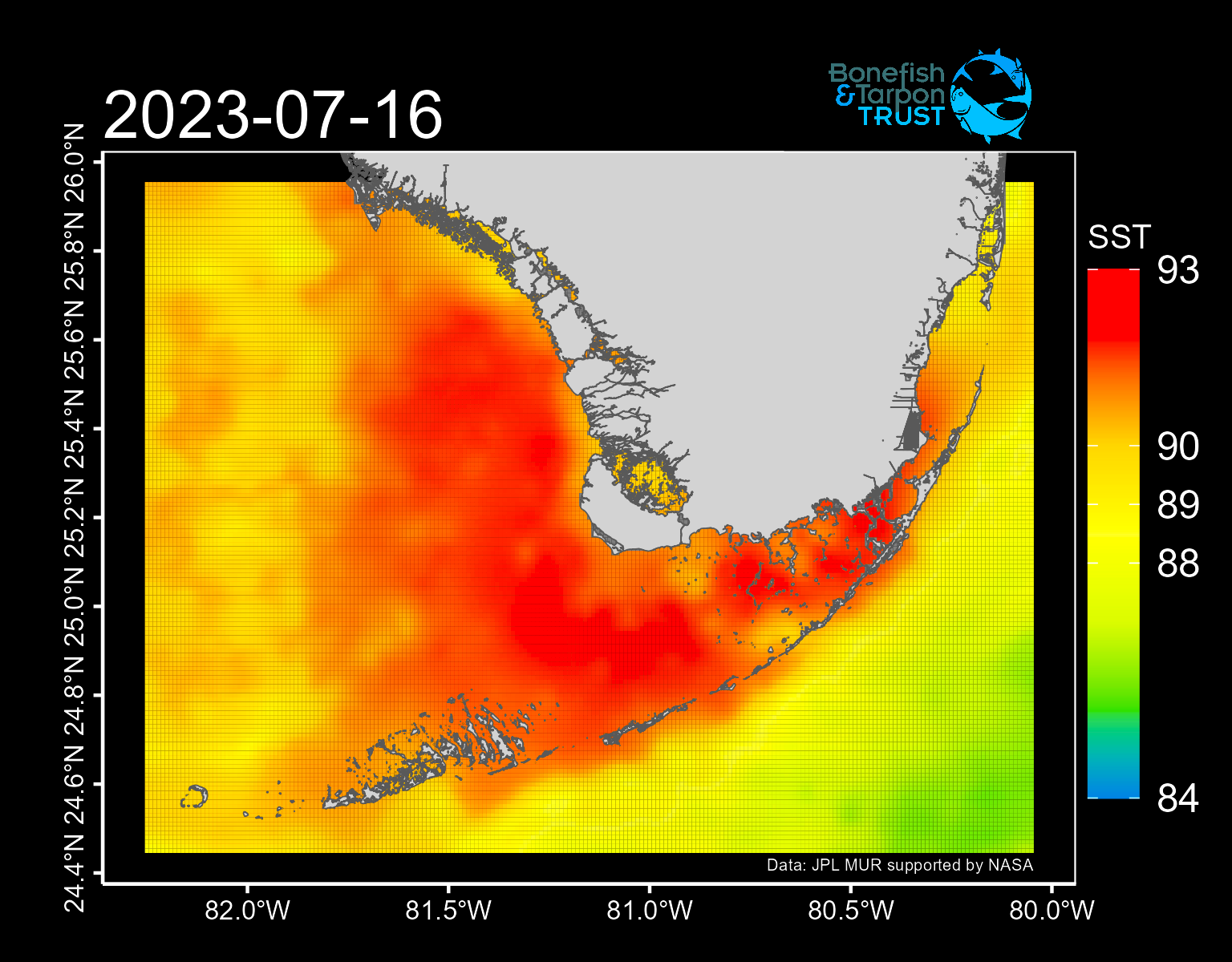 In July 2023, water temperatures in the Florida Keys reached record highs (>90 F!) causing significant coral bleaching and fish kills.