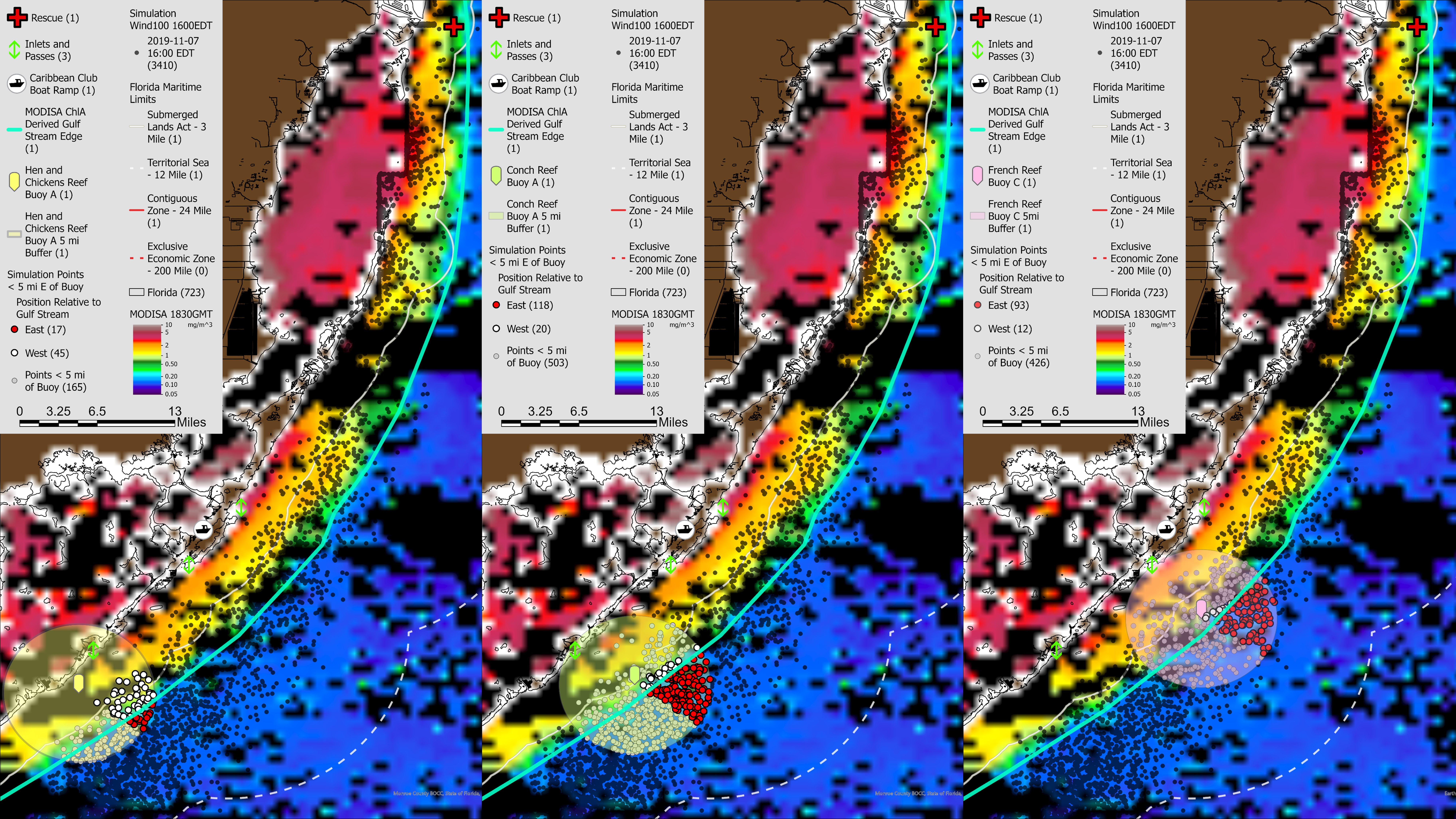 Particle dispersal simulations (individual based models) are often employed to predict dispersal patterns of contaminants or biologics (e.g., larvae) at sea. Here, I was contracted to recreate the trajectory of a capsized vessel.